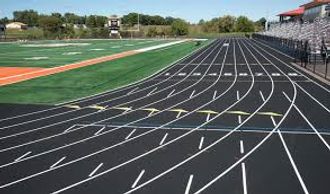 Painting takes about two working days, and the temperature must be above 40 degrees with dry conditions. All event markings are clearly identified in lane two with 3” high letters. Common finish line is 4” wide. The line paint material is a water base acrylic latex, compatible with the rubber surface. Includes choice of line colors, (white is highly recommended), large shaded numerals that can be matched to your school colors, race identifications, and shaded team name in your school colors. AFS provides accurate and quality lining work.